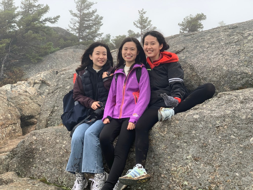 Crawling up slippery rocks, hair flying in the wind, shoes squelching, toes numb, fingers scrambling for a grip on branches, on trunks, on anything. Muddied gloves gripping hands that pull me against gravity. Anxiety, wonder, anxiety, wonder. And the air—so, so clean. A blast of oxygen after a mask-filled existence. There’s the easy rhythm of banter, the laughter filling the misty trees, the rapturous moment of lifting sweat-filled hair over blinking eyes and seeing the view for the first time. Drinking in the clouds lacing blue mountaintops like white mustaches, the miniature towns far below encircled by blankets of fall foliage, and the conifers sprouting like baby mushrooms across a canvas-like landscape.