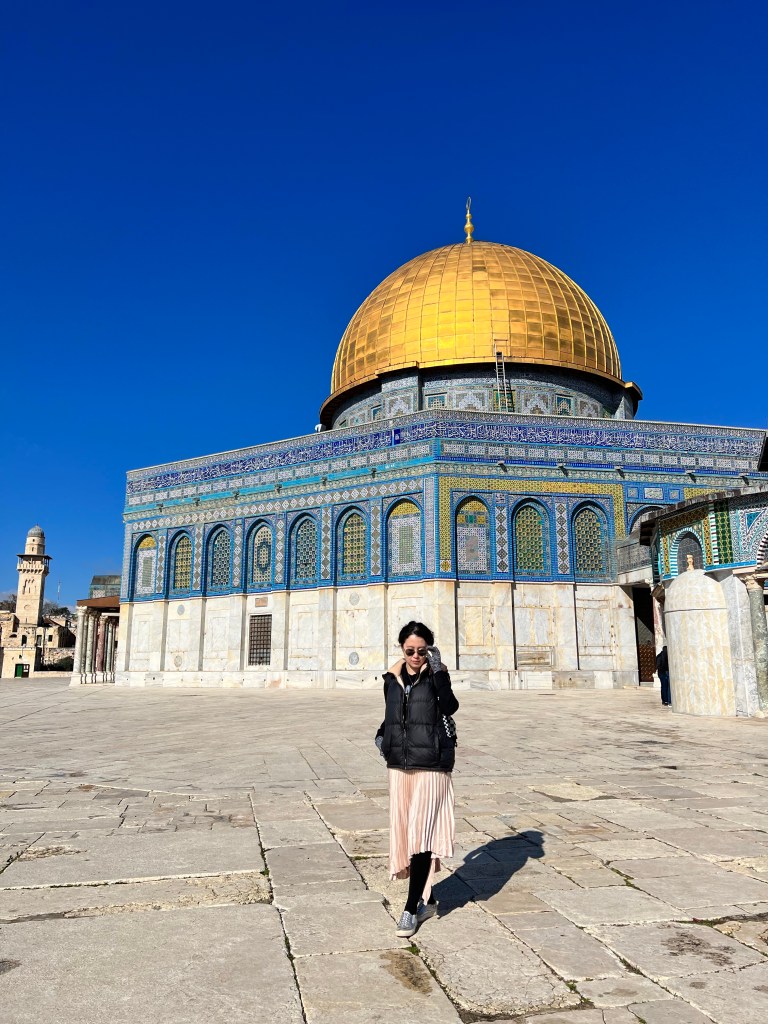 I was sitting on the steps of Al-Aqsa Mosque when he first uttered this, the cold stone pressing against my skirt. Behind me loomed the Dome of the Rock, round and gold and perfect, its mosaic walls—pale and midnight blue—guarding the rock from which Prophet Muhammad was believed to have ascended to heaven. The March air was crisp on the hill, dusted with the golden shimmer of the dome. Intuitively I held my breath as I circled the walls, blue sky glinting on blue marble. This was the holiest city in the world: Jerusalem.