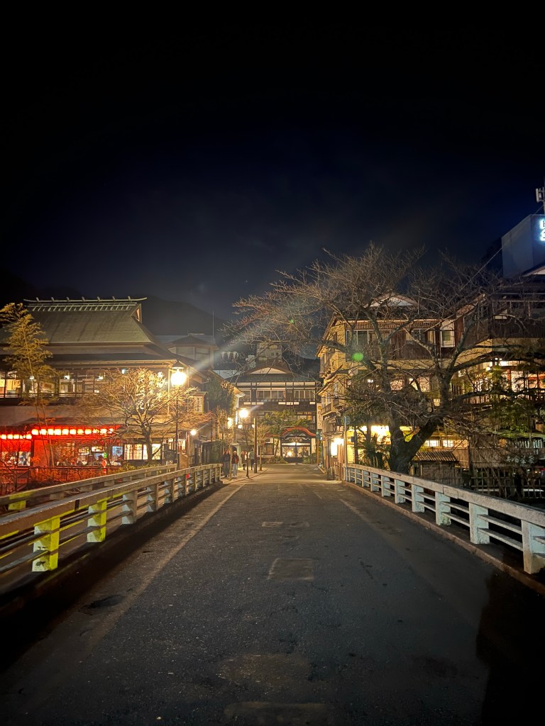 In a ryokan in Hakone, which was an otherwise uncharming town, the night was lacquered with steam and heightened each sensation: hot pools in the middle of lit-up trees, lined with black stone, early red flowers blossoming on the branches, the inky night sky full of stars, my head cool and clear and my body warm.