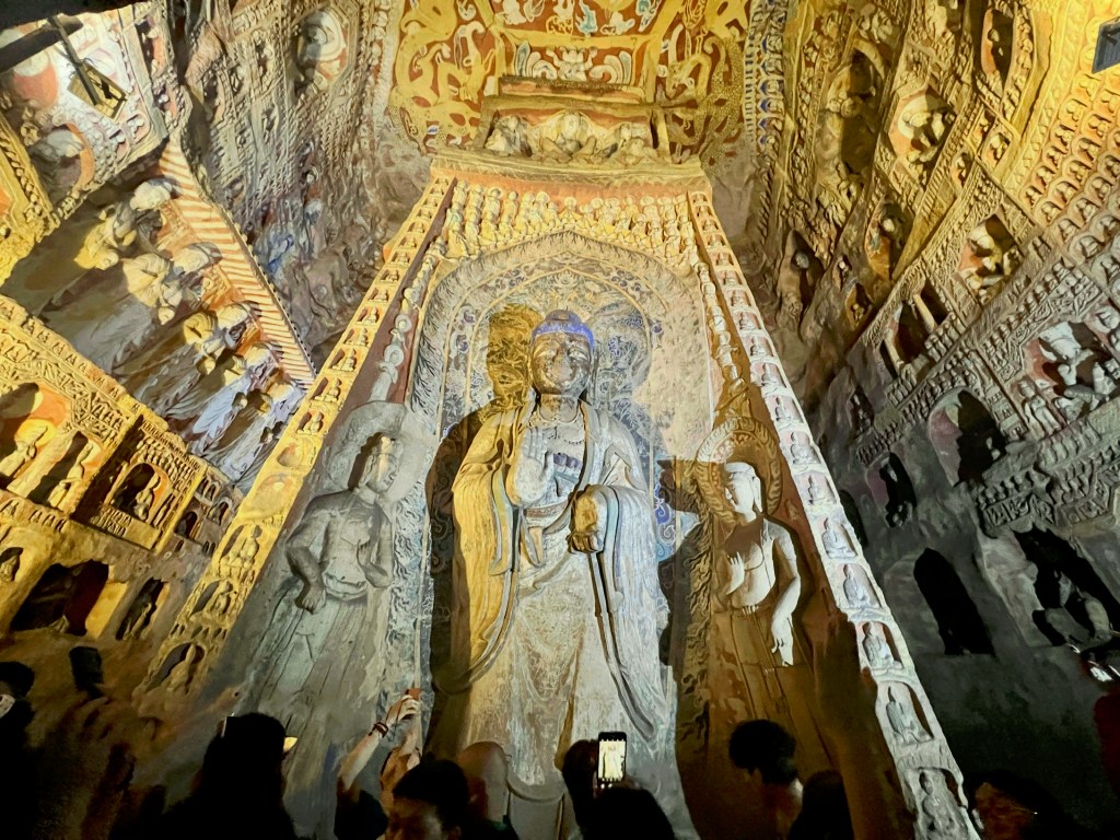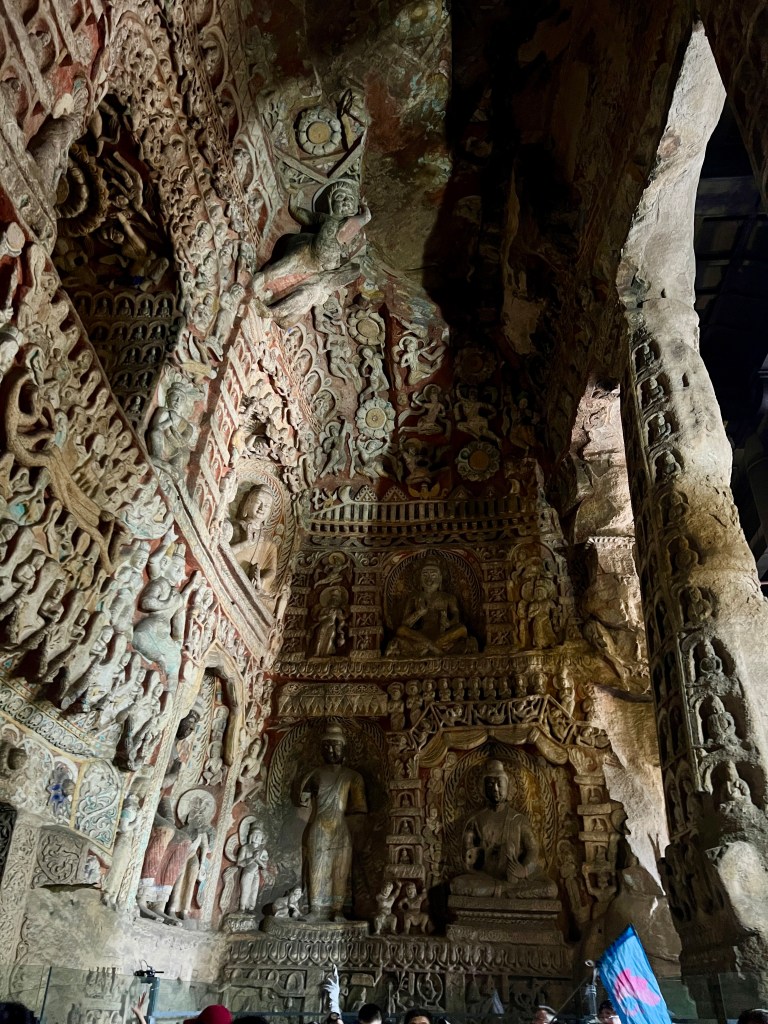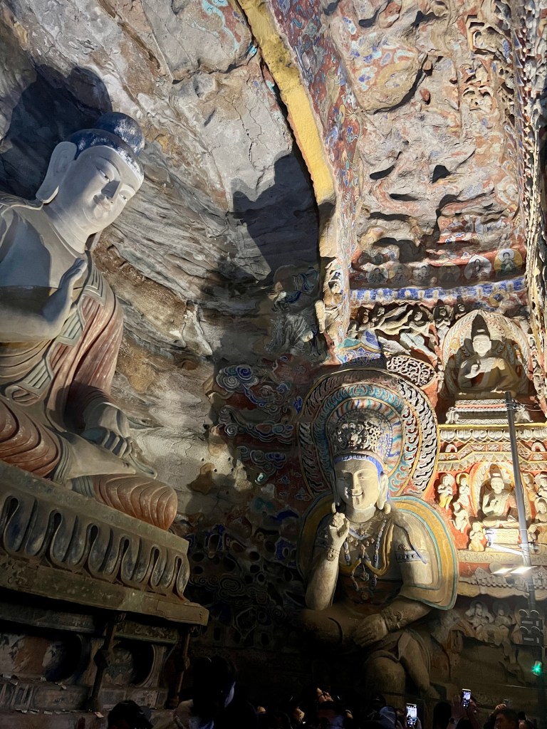 My favorite are the Yungang Grottoes, which are Buddhist temple caves carved in the fifth and sixth centuries by the Turkic-speaking Tuoba clan who ruled during the Northern Wei dynasty (and centuries later embellished by the Liao and Qing dynasties). With our guide, I only went into a dozen out of hundreds of caves, but take a look below at the sheer variety and scale—from tiny centimeter-tall Buddha motifs dotting the walls to giant 17-meter Buddha statues towering over all of us. The caverns have ironically preserved most of the pigment of the frescoes. The awe I felt, standing at the foot of these sculptures, must’ve been akin to what those a thousand years ago. Wonder transcends time.